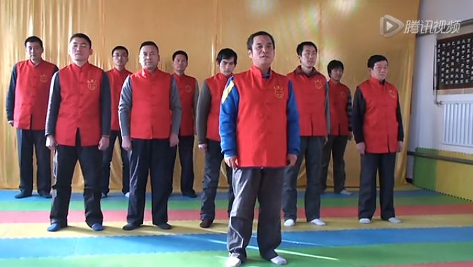 两脚分开,与肩同宽。双手自然下垂,双目微闭,凝定身心。